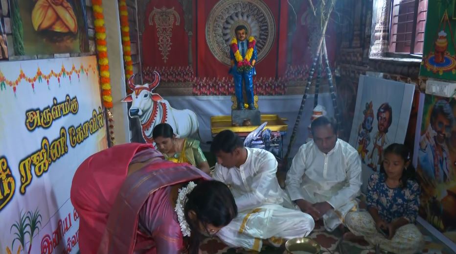 Karthik, a Rajinikanth fan from Madurai, celebrated Tamil New Year in a unique way by honoring the superstar at a temple he built within his residence.