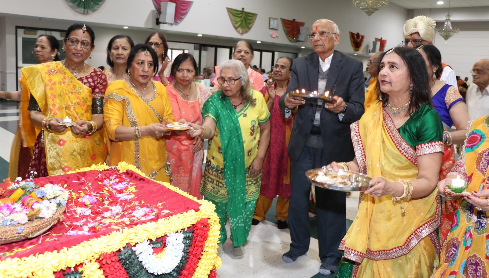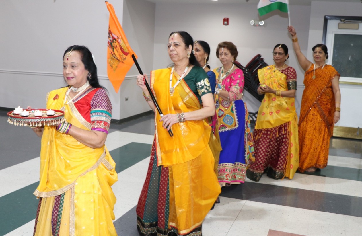 The religious fervor reached its peak as participants dressed in beautiful saffron clothes with a paghdi on their heads brought Ramji’s chariot to the auditorium while singing the bhajan, ‘Ramjiki Nikali Savari Ramji ki Leela Hai Nyari.’ All the members welcomed the Ram Shobhayatra and sought Lord Ram’s blessings. The entire hall was echoing with the chants of Jai Shri Ram. The celebration continued with members performing Garba. After this, aarti of Shri Ram Bhagwan and Shri Hanumanji was performed and all the members were given Peda as Prasad.