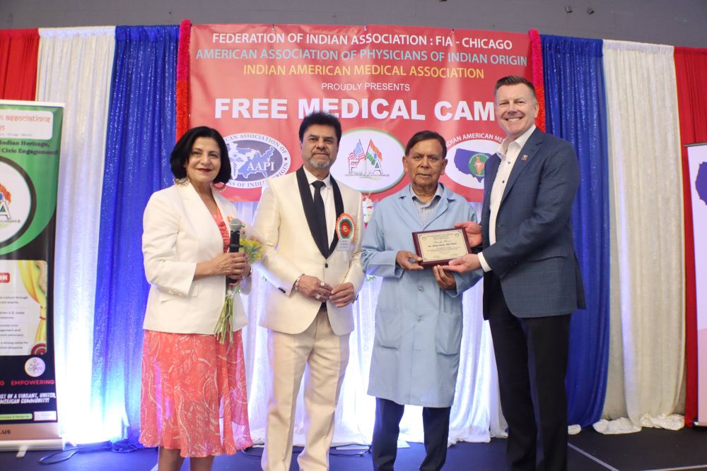 Mayor Scott Wehrli of Naperville graced the event as the Chief Guest, staying for its entirety and presenting the Awards to the Doctors and individuals who demonstrated exceptional community service. Standing proudly beside him, Alderwoman Shweta Baid added her voice to this powerful recognition. With grace and sincerity, she personally congratulated the honorees, presented awards, and thanked the many healthcare providers and in her words, “True heroes don’t seek the spotlight, they create it for others”. Doctors and Medical Services providers who participated and honored were: Dr. Dilip Shah, MD FACC, Dr. Meher Medavaram, Dr. Suresh Reddy (ex-Faculty Harvard Medical School), Dr. Kamal Patel, MD, Dr. Umang Patel, MD, Dr. Niranjana Shah, Dr. Radhika Chimata, MD, Dr. Urmilla Talsania, MD, Dr. Kirti Talsania, MD, Dr. Sukanya Reddy, MD, Dr. Rohitkumar Vasa, MD, Dr. Aman Sethi, MD, Dr. Vivek Mohan, MD, Dr. Neetha Dhananjaya, MD, Dr. Pooja Kinkabwala, DO, Dr. Leela Rao, MD, Dr. Lalitha Darbha, MD, Dr. Annu Mehta, MD, Dr. Praveen Mehta, MD, Dr. Piyush Icchashan Vyas, MD, Dr. Rama R Medavaram, MD, Deepali Aul, Ayesha Afridi, Deepti Suri Jayanthi Sridher, and Dr. Fairy Patel and many more, covering specialties such as Cardiology, Internal Medicine, Dentistry, Pediatrics, Psychiatry, Chiropractic, Ayurveda, and Nutrition, and health professionals , who played key roles in ensuring holistic care was provided to every patient. Their collective efforts ensured comprehensive medical consultations, screenings, and personalized advice for attendees.