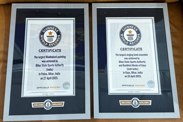 Bihar has proudly secured two Guinness World Records for the largest Madhubani painting and the largest singing bowl ensemble by Buddhist monks, marking a historic cultural milestone ahead of the Khelo India Youth Games 2025. The games, which will be inaugurated by Prime Minister Narendra Modi on May 4, are being hosted in Bihar for the first time, spanning multiple cities including Patna, Rajgir, Gaya, Bhagalpur, and Begusarai.