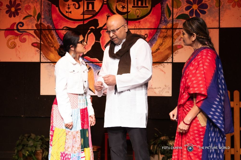 And this ethos is not lost on the ensemble. Everyone brings something different to the collaboration. Manish Dhall, who plays a lead role and helps with publicity said that “community theater is more than just a stage—it’s a lifeline. It connects me with fellow actors and the audience in ways words can’t capture. Through it, I’ve found a family away from home, a place where I’m truly seen. It challenges me, pushes my boundaries.” Pranav Shukla, another lead character adds that “community theater has helped the community stay connected with each other and their origins, make the community more alive, spread awareness, question things, and grow together toward a more peaceful and happy life.”