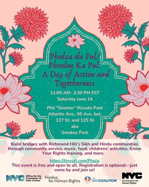 Phullan da Pul/Phoolon Ka Pul: A Day of Action and Togetherness on Saturday, June 14 | 11:00 AM – 2:30 PM at Phil “Scooter” Rizzuto Park (Smokey Park), Richmond Hill, Queens
