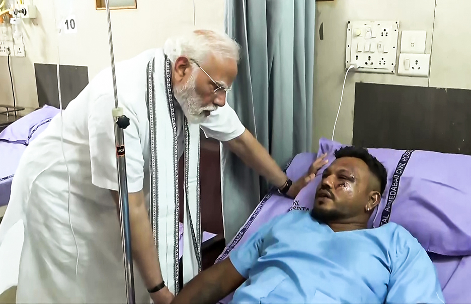 The Prime Minister, also met with others admitted in the same hospital, with injuries sustained after the Air India flight to London crashed, soon after it took off from the Ahmedabad International Airport, into a medical college complex in Meghaninagar nearby.