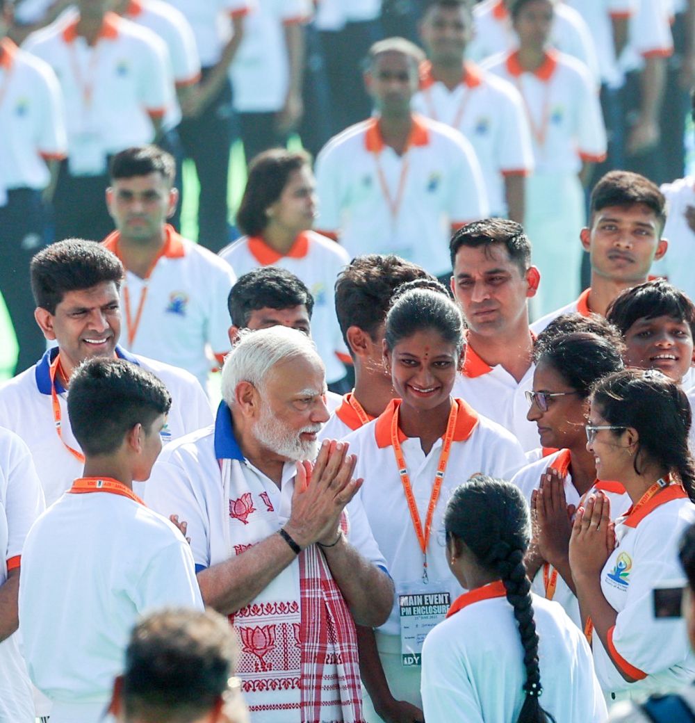 Sharing glimpses from the event held in Visakhapatnam, Andhra Pradesh, the Prime Minister said the day highlighted how yoga ‘unites’ the world.