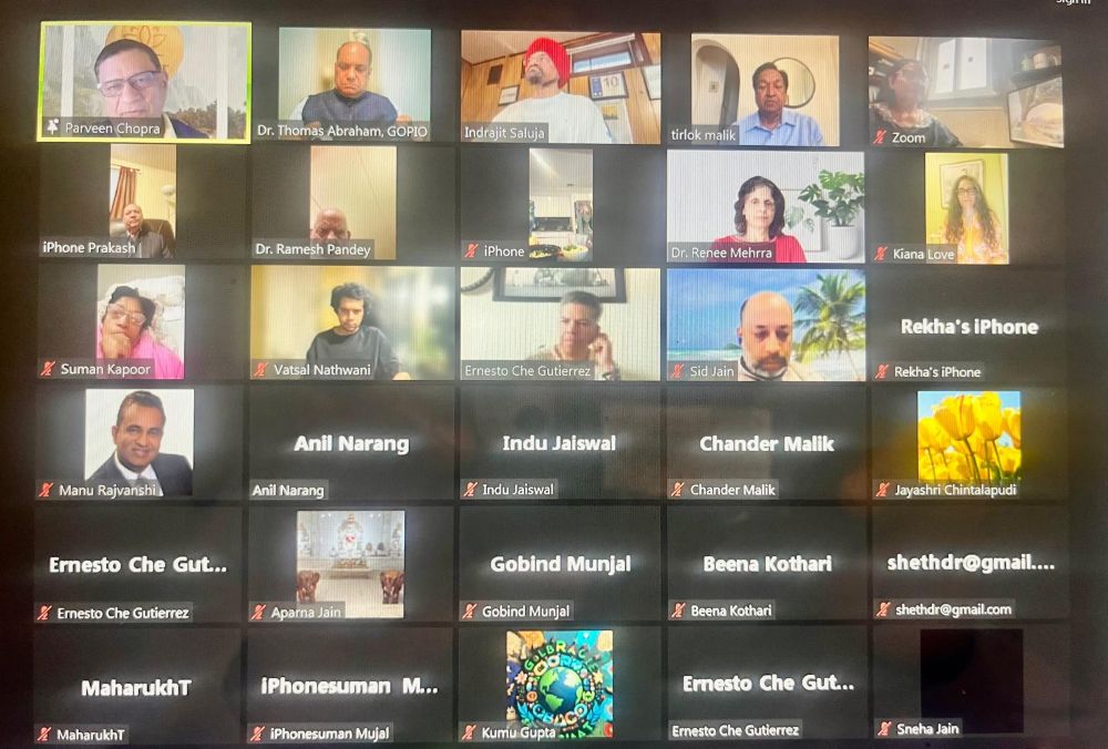 Participants joined across the globe notably from USA, Canada, African Continent, India, Mexico, New Zealand, etc. including Global Peace Secretariat Founder and Social Activist Kumu Gupta, AIA National President Gobind Munjal, GOPIO Woman’s Council Co-Chair Jayashri Chintalapudi and GOPIO Life Member and community leader from New Zealand Suman Kapoor.