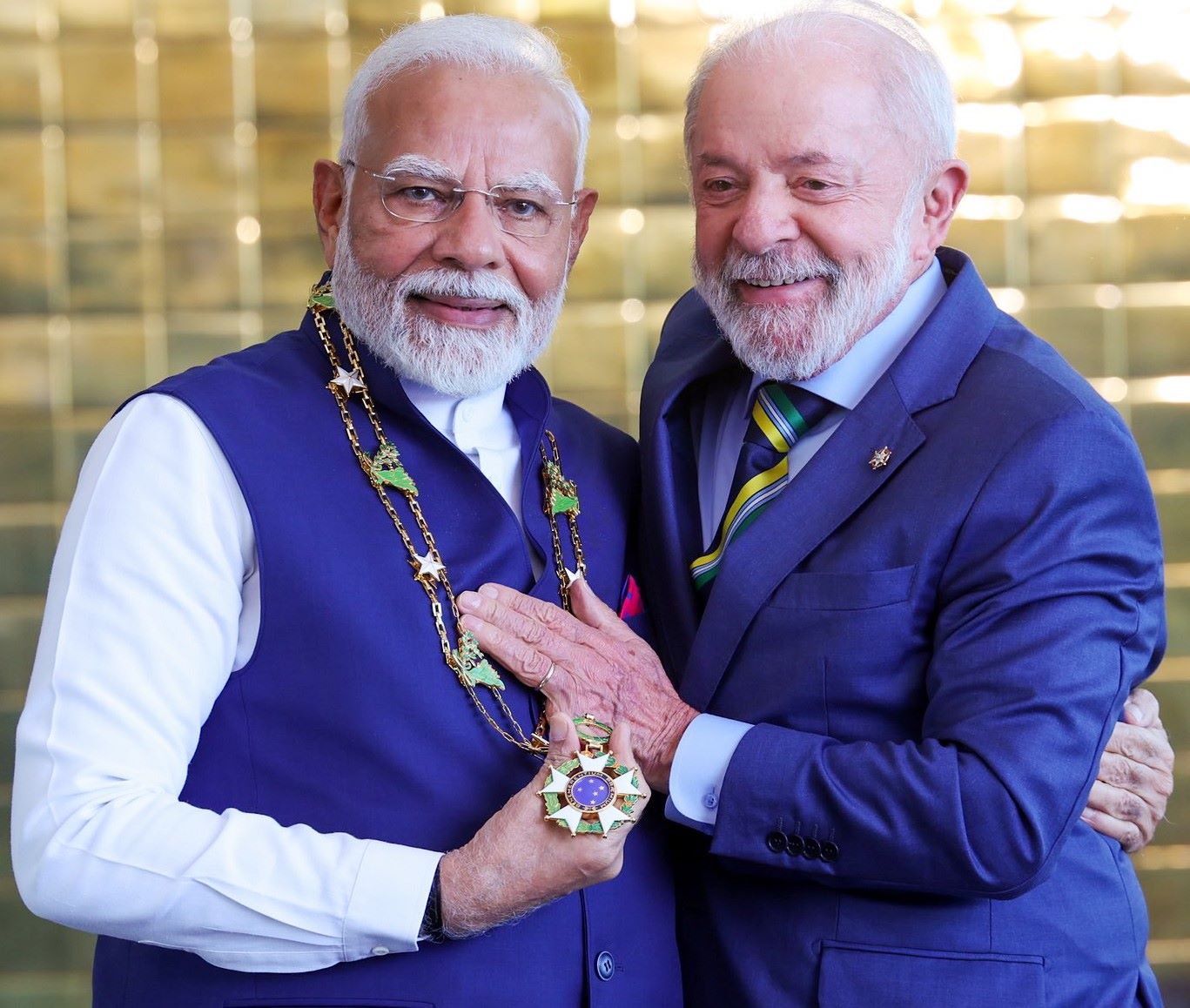 In Brasilia, Modi held a bilateral meeting with President Lula da Silva, where the two leaders discussed trade, technology, agriculture, and space cooperation, further strengthening the India-Brazil Strategic Partnership. For his efforts, Modi was conferred Brazil’s highest civilian honor, the Grand Collar of the National Order of the Southern Cross.