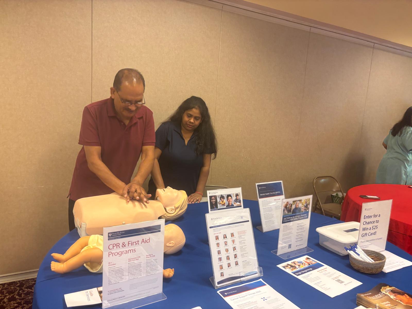 Medical professionals from various specialties—including internal medicine, cardiology, neurology, and mental health—volunteered their time to provide personalized care. Additional support came from organizations such as Legacy Pharmacy Group, SSAI, Marlboro Medical Arts Pharmacy, Rutgers-SATHI, Stroke Prevention and Education, CPR – Hands on, NJ CEED, Penn Medicine Princeton, LabCorp, and SAMHIN. Volunteer groups, including the Rotary Club of Plainsboro-North and South Brunswick – RCOP, their youth interactive club, and the NJ Youth Artists Leo Club, contributed essential assistance. The Rotary District 7475 Governor Raymond F. Freaney, Jr. and DGND Kalpana Patel visited the health fair to extend their support to HCNJ continued commitment for healthier communities in New Jersey.