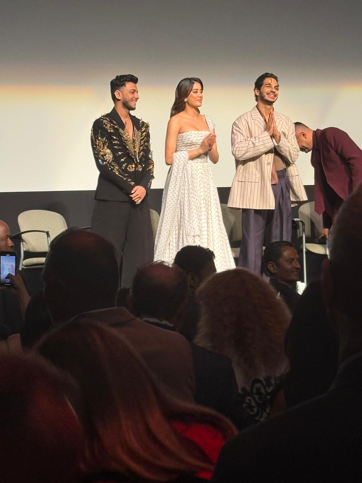 The lead roles are portrayed by Ishaan Khatter and Vishal Jethwa, with Janhvi Kapoor also starring. The trio, along with Ghaywan, received a warm ovation as they entered the auditorium.