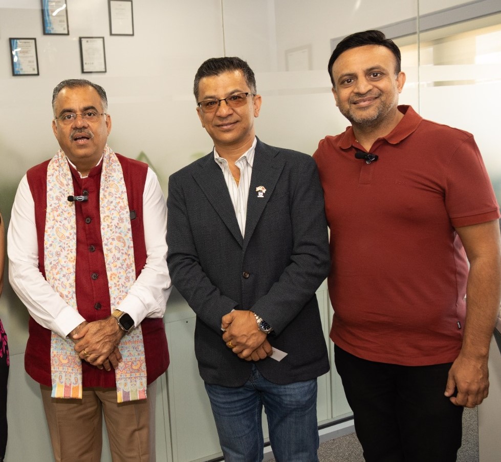 (from left) Shri Tarun Chugh, National Secretary of India’s ruling BJP party, Pradip Shrestha, President of the Greater New York Nepali Chamber of Commerce, and Nishant Garg, founder of INYANA.