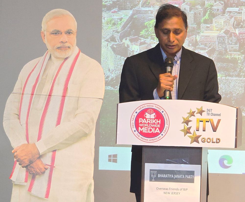 Padma Shri awardee and community leader Dr. Sudhir Parikh delivered a keynote address. He praised Prime Minister Mr. Modi as a living embodiment of the principle of “Nation First.” Dr. Parikh also shared memories of his early interactions with a young Mr. Narendra Modi, alongside leaders like Mr. L.K. Advani and Mr. Atal Bihari Vajpayee. He noted that it was Mr. Modi himself who encouraged him to launch a television channel to broadcast Indian culture and news in America, which ultimately became ITV Gold. Today, the channel broadcasts Doordarshan news daily in the U.S.