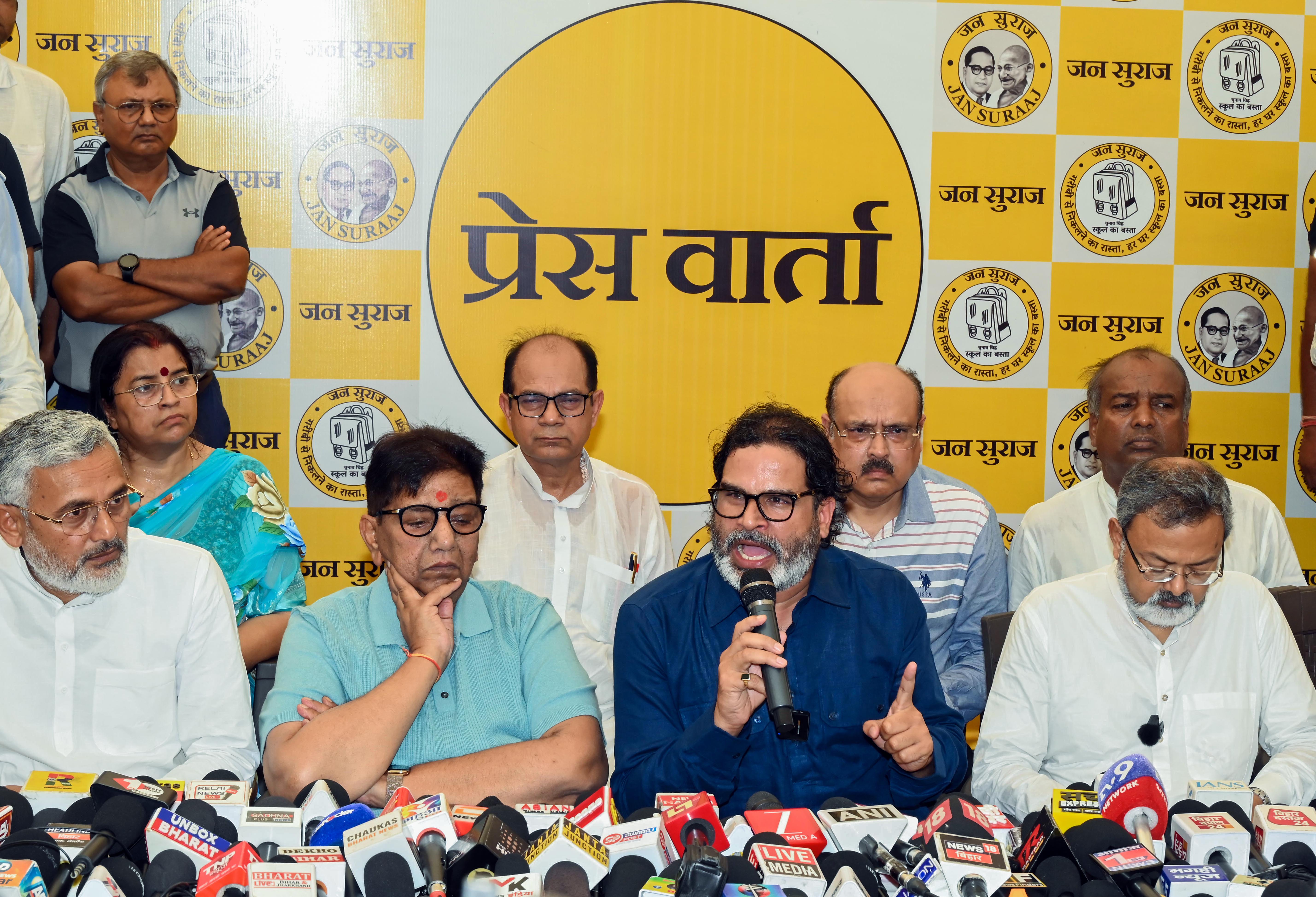 Jan Suraaj founder Prashant Kishor addresses a press conference in Patna (ANI Photo)