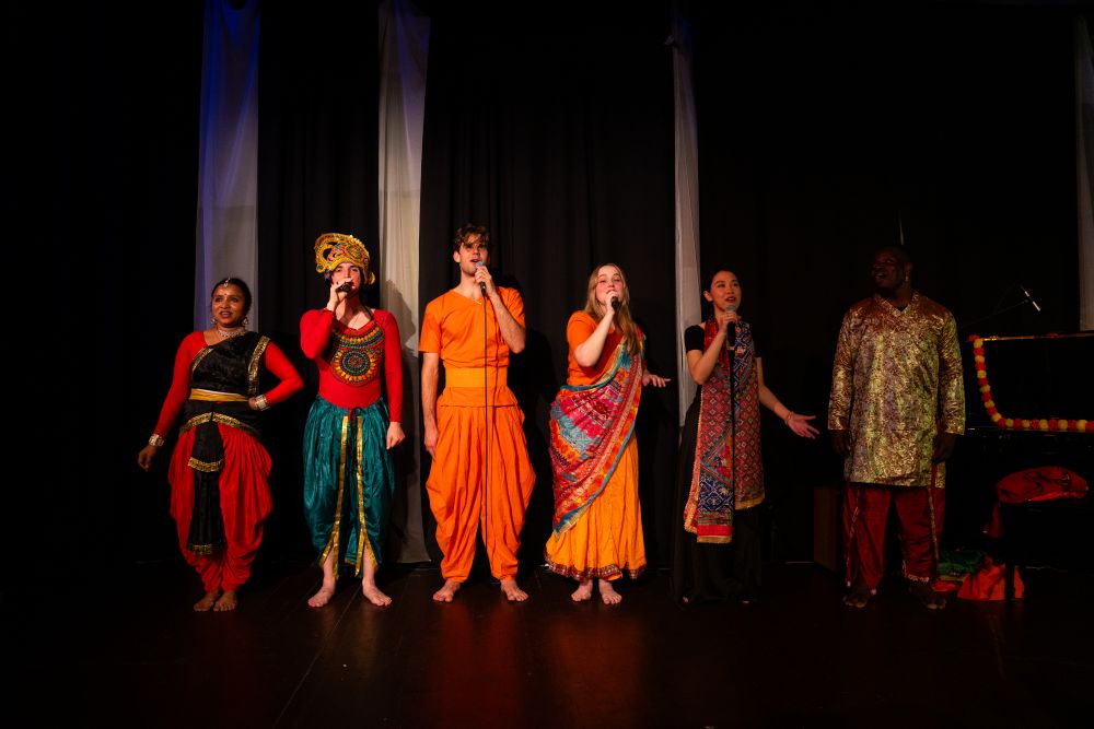 The second act included excerpts from Ramaavan – A Musical, Surati’s NEA award-winning original production, envisioned, re-imagined, and created by Rimli Roy, which also toured India in 2024 by a special invitation by the Indian Council for Cultural Relations (ICCR – Govt of India), inspired by the Ramayana, performed by Jonathan Power, Andrew Leonforte, Paulina Yeung, Madison Halla, Harsha Harikumar, Hitanshi Patel, Kijana Lewis, and Vidhya Dinesh, earning a standing ovation. Ramaavan is an original production with music composed by Sumit Roy and Rajesh Roy, and lyrics and verses written by Arati Roy.