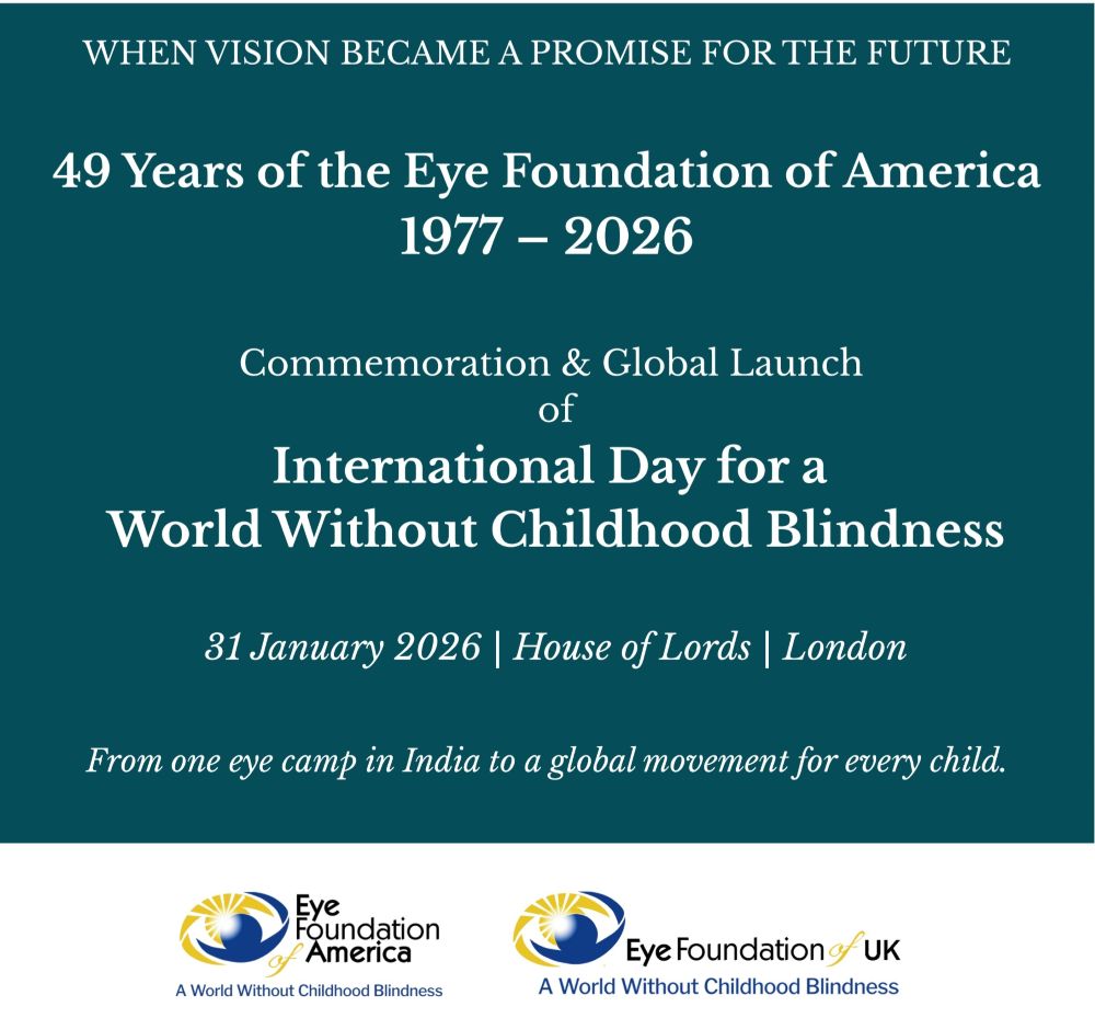 On Saturday, 31 January 2026, global health leaders, policymakers, philanthropists, and youth changemakers will convene at the House of Lords, London, to commemorate the International Day for a World Without Childhood Blindness—a landmark global observance dedicated to ensuring that no child is needlessly blind in the 21st century.