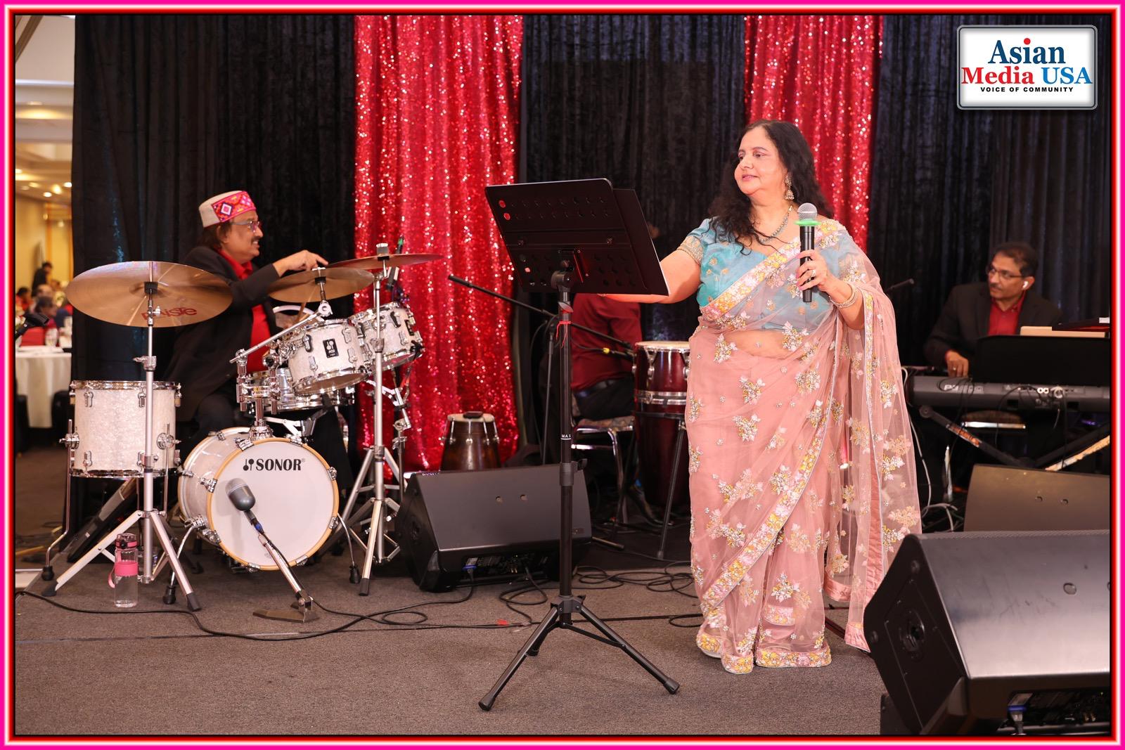 The spotlight then shifted to two powerhouse vocalists: the versatile Bollywood sensation Swapnil Sahu and the inspiring Dr. Anu Gupta. Their introduction sparked thunderous applause, and together they wove magic with a medley of evergreen classics “Tip Tip Barsa Paani,” “Dil To Pagal Hai,” “Yeh Kaali Kaali Aankhen,” “Mere Khwabon Mein,” and “Ladki Badi Anjaani.” The chemistry soared through romantic duets like “Dil Mein Ho Tum,” “Tu Meri Zindagi Hai,” “Tu Shayar Hai,” “Jhumka Gira Re,” “Neele Neele Ambar,” “Aisi Deewangi,” “Tujhe Dekha To Yeh Jaana Sanam,” “Ek Pyar Ka Nagma Hai,” “Pehla Nasha,” and a heartfelt string of favorites—“Mile Ho Tum Humko,” “Jub Koi Baat,” “Ye Sama Sama Hai,” “Pal Pal Dil Ke Paas,” and “Pyar Deewana.” Swapnil’s solo renditions of “Meri Bechaini Ko,” “Janam Janam,” and “Muskurane Ki” added layers of emotion, while the crowd swayed in unison.